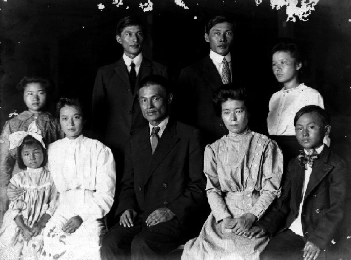 Family Front row, left to right: Toki, Moto (wife of Hachitaro), Kichimatsu, Fuji, Taro; back row: a maid, Hachitaro, Tora, and a cousin. |