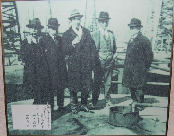 Kishi's grandson. [Yamamoto Memorial Museum, Nagaoka] Upon inspecting various places in Europe, Isoroku visited the Orange Oil Fields in Texas in the U.S. Isoroku made a serious inspection of the oil fields, which would have close relations to his hometown, and while so doing, he also felt a strong under strength of America. This trip resulted in even strengthing his beliefs. That belief was that this era will be controlled by oil and aircrafts. [Morning Edition Niigata Nippou, March 28, 2003] |