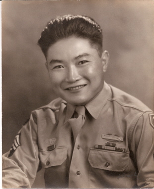 From Camp Shelby he went to New York, flew to Africa and then on to Italy and France for combat. On October 29, 1944 he was called to Biffontaine, France, to identify the body of his brother Saburo who was killed in action. While serving his country he received several metals including four Bronze Stars. As part of his citation for one of the Bronze Stars, the record states, “………With diligence, perseverance, untiring effort, and with disregard for personal safety……….performed his duties in a superior manner. A large number of the battalion’s vehicles were constantly kept in excellent operating condition and available on call to the frontline elements because of the skill and untiring conscientiousness of Technician Fourth Grade Tanamachi…….” After an Honorable Discharge at the end of the war on August 4, 1945, Goro returned to Texas and married childhood sweetheart, Yuriko Kawamura. They eventually settled in Ohio where they lived until his death in 1990. They have four children and four grandsons. |