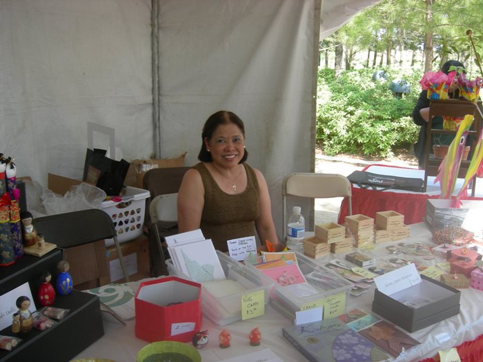Tisha with hand-made crafts |